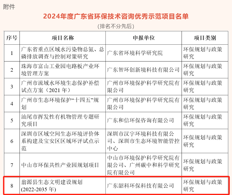 這一年我們齊心協(xié)力,勤練內(nèi)功,專(zhuān)業(yè)知識(shí)愈發(fā)扎實(shí),業(yè)務(wù)技能大幅增進(jìn),既有團(tuán)隊(duì)協(xié)作的默契,又有個(gè)人的成長(zhǎng)的突破,更有收獲成功喜悅。我司編制的《翁源縣生態(tài)文明建設(shè)規(guī)劃(2022-2035年)》、《新豐產(chǎn)業(yè)轉(zhuǎn)移工業(yè)園規(guī)劃環(huán)境影響評(píng)價(jià)》、以及《廣東旭鑫新能源科技有限公司年產(chǎn)650萬(wàn)只蓄電池項(xiàng)目環(huán)境影響評(píng)價(jià)》等3個(gè)項(xiàng)目被評(píng)為2024年度廣東省環(huán)保技術(shù)咨詢(xún)優(yōu)秀示范項(xiàng)目。